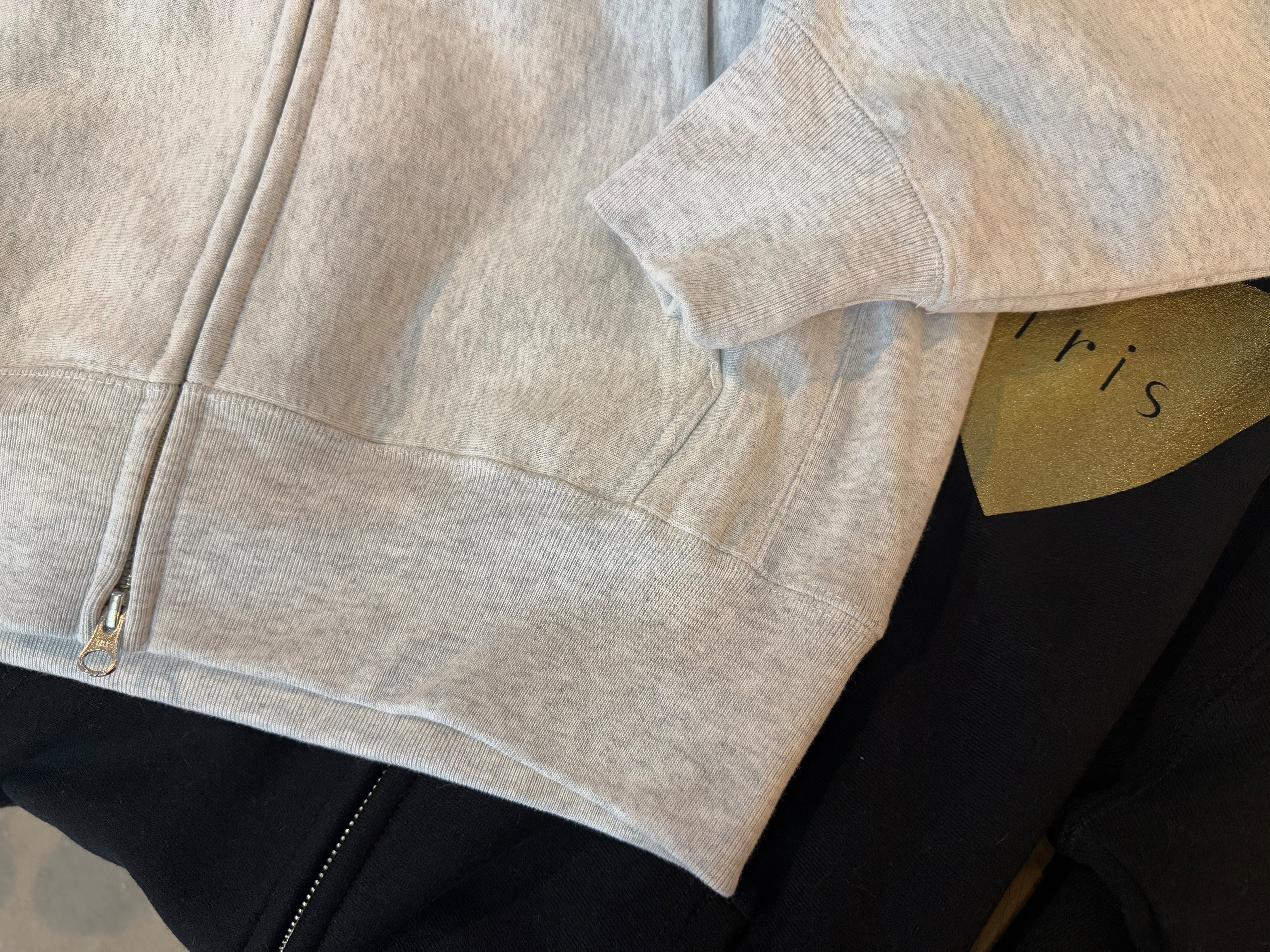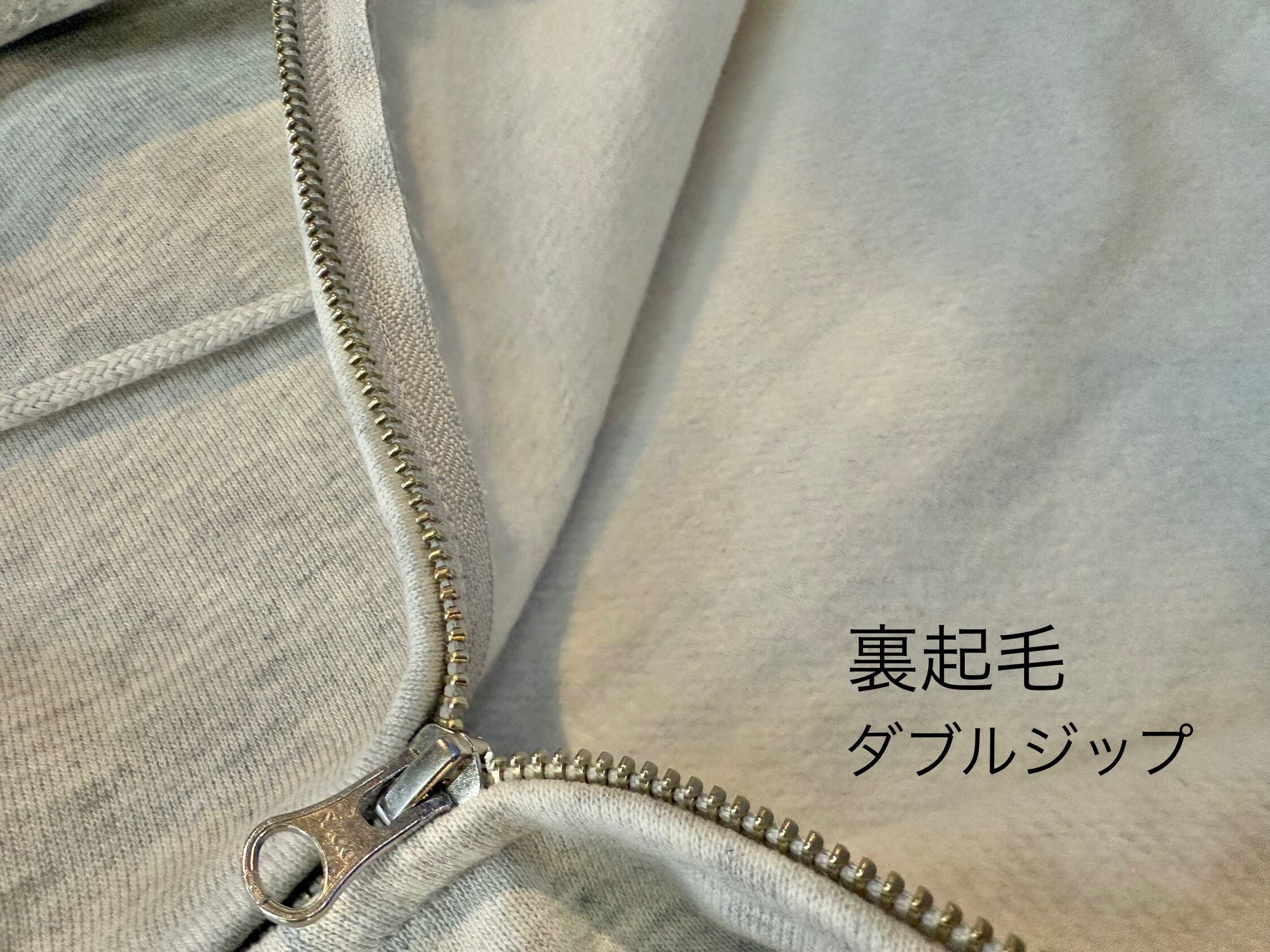 裏起毛のダブルジップアップパーカーは