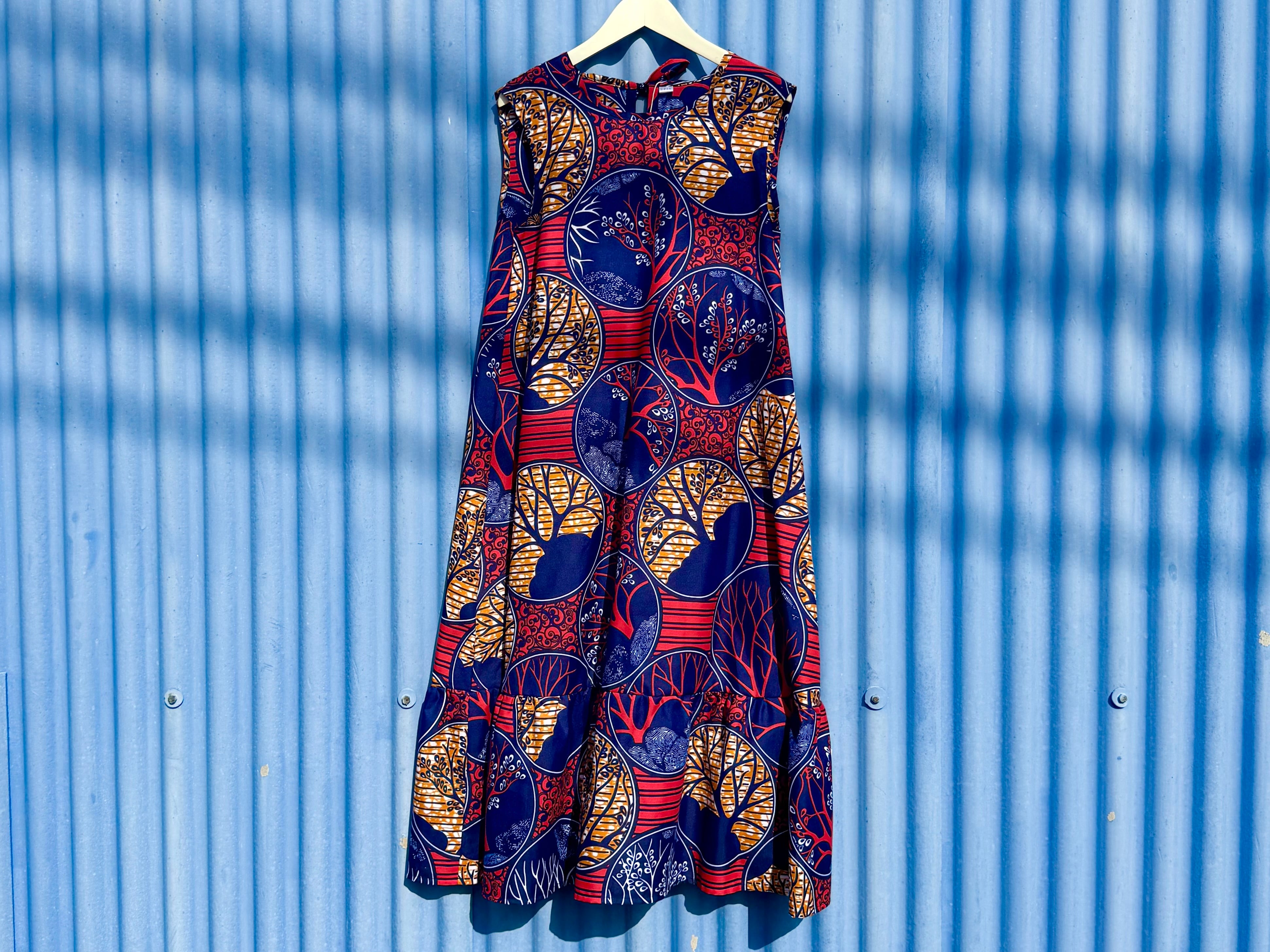 African ティアードワンピース